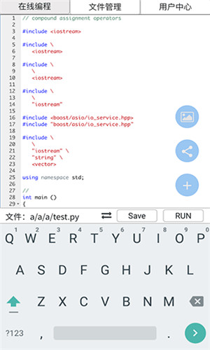 在线编程是一款为程序员开发的手机编程软件。使用这款app就能在手机上进行程序的编写,很大程度上提升编程人员的编程效率,并且支持编程的语言非常的多,包含了c++、Java、PHP、Ada、c#等等,满足各种编程人员的使用需求。编写程序过程中,用户编写的编程内容都可以保存起来,所有的内容都可以进行云端储存,确保您编写的内容不会丢失导致造成重大的损失。