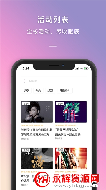 3、校园活动在线报名、打卡签到、颁奖、学分、评价;