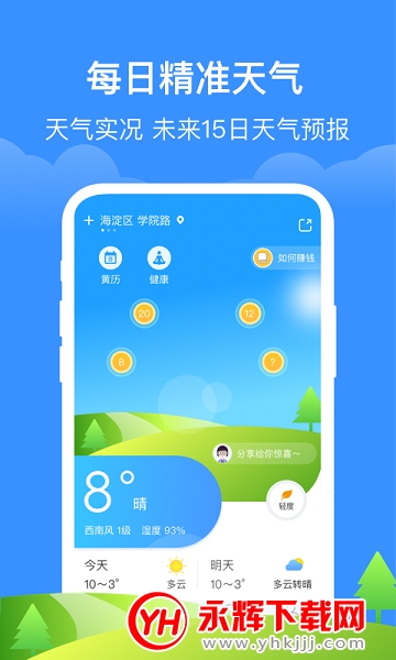 如意天气红包版是一款能让你精确的知道今天天气状况的天气预报手机app。这款软件更是一款居家旅行必备的软件,不仅能赚钱还能查看实时天气。对这款软件感兴趣的小伙伴们欢迎来本站下载体验哦!