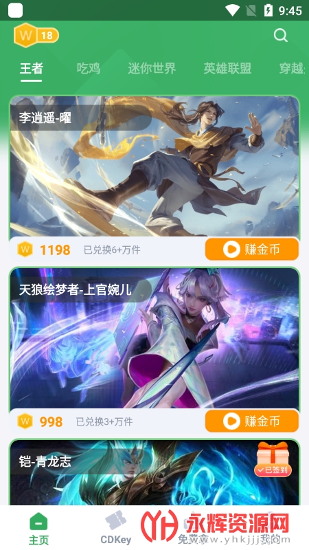 2、用户们每天在app中完成小游戏做任务即可获得兑换的币,用来换取热门游戏中的皮肤。