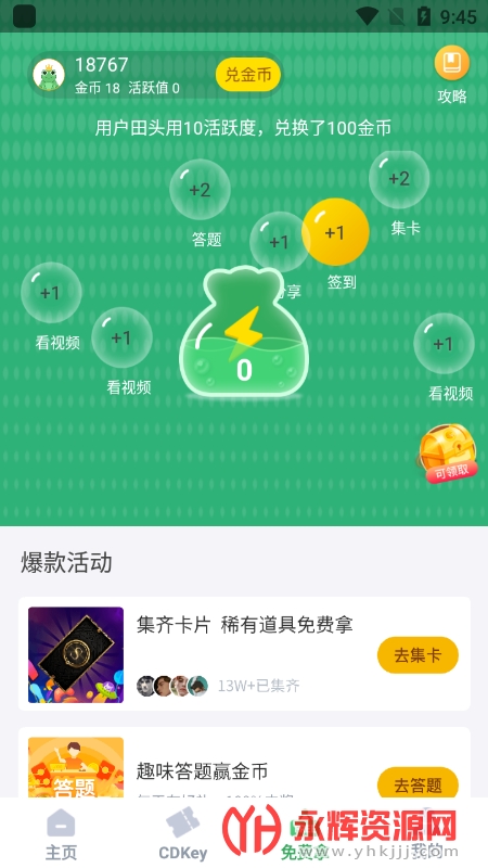 4、收集金币:每日签到答题,获得大量金币。