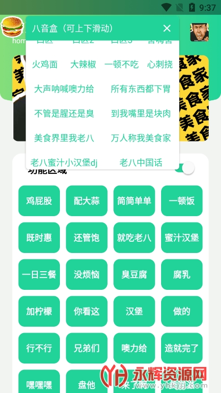 抖音八音盒app(嗨嗨嗨老八原声盒)是为老八的粉丝朋友们提供的娱乐软件,使用这款软件能为您播放出老八各种趣味语音包,你喜欢的嗨嗨嗨在这里也可以听到,对这款软件感兴趣的朋友们快来永辉资源网下载吧!