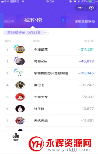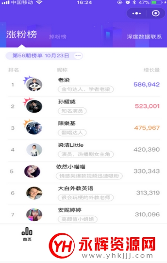 每天的最佳红人榜,粉丝人数增加情况等数据都做了比较。