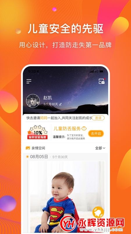 3、支持亲情相册功能,家长可通过守护者APP一键上传宝贝相片,建立宝宝成长相册;从怀孕到育儿,全程记录宝贝成长