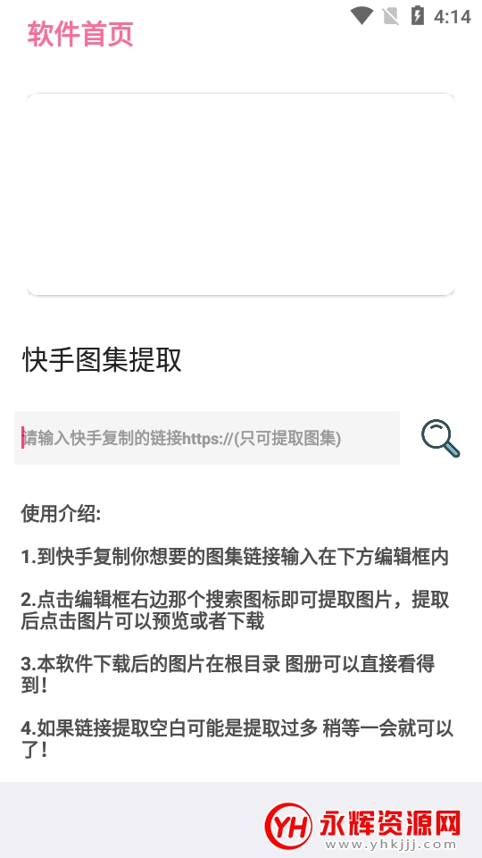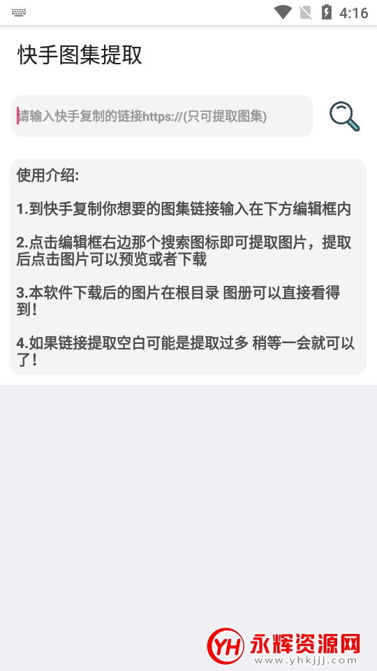 1.到快手复制你想要的图集链接输入在下方编辑框内