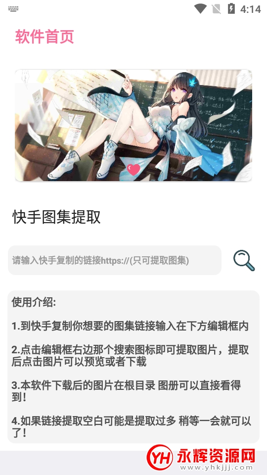 图集提取2022一款功能十分强大的手机图片提取应用软件,这里能够更好快速的保存快手上面图片,有水印直接无水印保存图片,想要原图私信作者还是特别免费的,感兴趣朋友赶快前来永辉下载网体验吧!