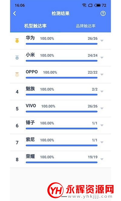 3、输入短信签名和短信内容一键测试,实时查看各手机品牌触达率以及手机型号触达率。