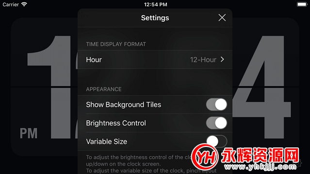 2、应用程序内部的亮度控制,显示/隐藏背景图块;