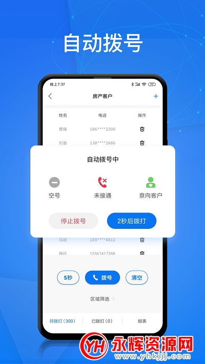呼叫功能:自动拨号,自动外呼,电话软件,电销神器,电销管家,移动销售,电话销售