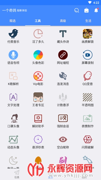 一个奇鸽船新体验最新版为广大的朋友们提供带来的手机应用估计,一个奇鸽app有着海量的功能应用为用户带来,唱吧偷歌、付费音乐,视频提取以及游戏账号解封等一系列功能,有需求的朋友快来下载体验一番吧!