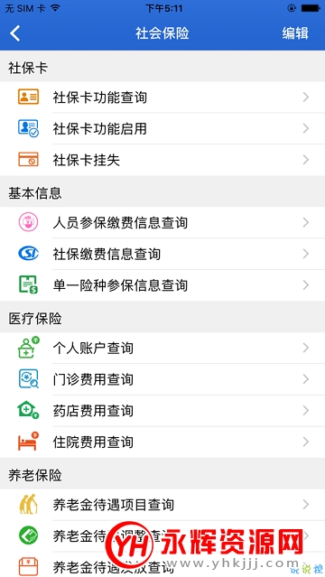 相关的定点的医疗服务,药点的查询均有,支持在线办理及挂失服务;