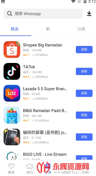 6、应用下载,推荐、应用、游戏、排行多种方式寻找你最喜欢的app。