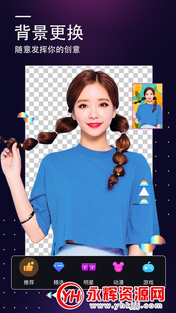 完全自动:使用AI技术,只需轻轻一按即可将脸部放在任何背景上。