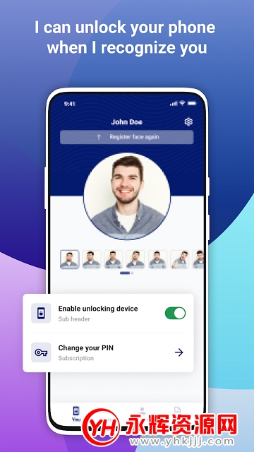 手机人脸识别解锁软件,识别精准,无需记住冗长密码,设置人脸识别屏幕锁,设置轻松,识别准确,能够通过手机摄像头轻松识别人脸,轻松又便捷。