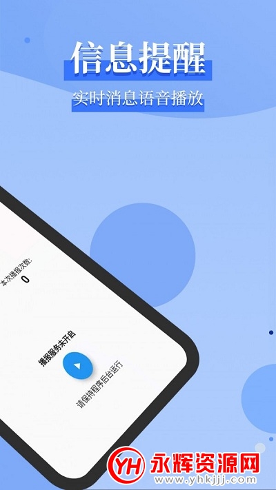 消息语音播放app是一款可以一键提醒你手机最新消息的应用软件。这款软件能将受到的消息第一时间进行语音播放,避免你错过非常重要的消息。对这款软件感兴趣的朋友们还在等什么呢?快来永辉资源网下载体验试试吧!