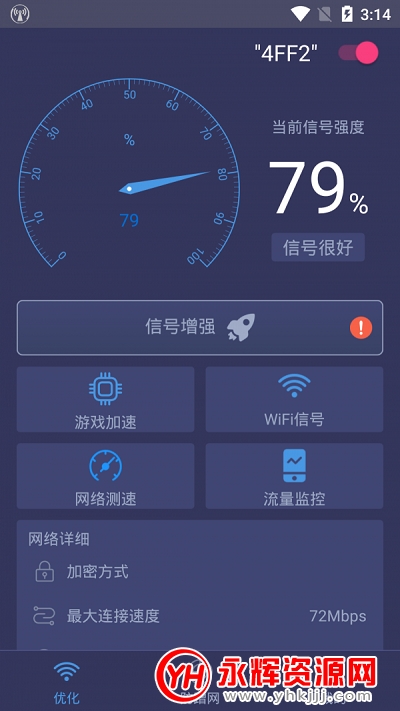 WiFi加速管家app是一款可以帮你提升WiFi网速的应用软件。使用这款软件,你可以更加方便的管理你家WiFi,防止别人蹭网。对这款软件感兴趣的朋友们还在等什么呢?快来永辉资源网下载体验试试吧!