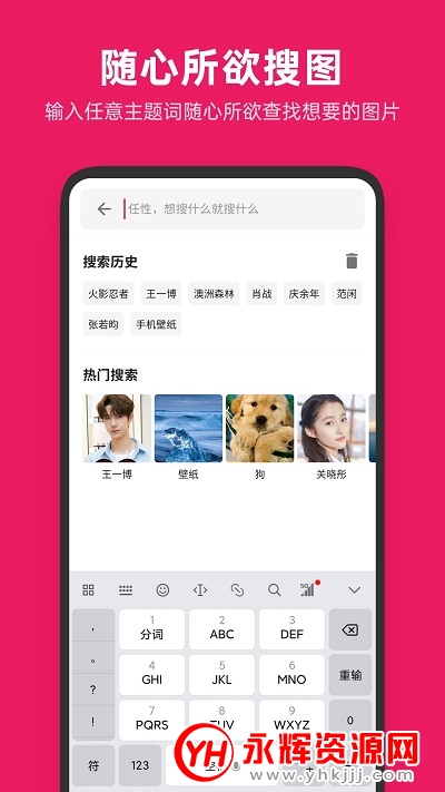 图片搜搜去广告会员版是一款十分好用的图片在线搜索工具。使用这款软件你只需要输入你想找图片的关键词,软件即可为你在线匹配对应的图片,非常的方便。有需要的朋友们可以来永辉资源网下载使用哦!