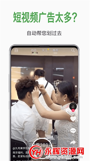 「短视频广告划过」刷几条短视频就有广告出现?就有直播出现?用「去广告」吧,短视频广告自动滑过,滑过直播,还你干净上网环境。