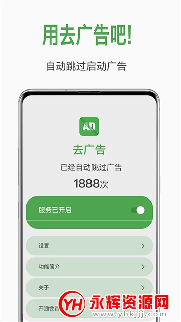 自动跳过开屏广告的广告过滤软件,轻松跳过启动页,快速进入首页。广告过滤 开屏自动跳过 广告拦截 广告净化 开屏拦截 去广告 广告屏蔽 轻启动APP统统搞定。