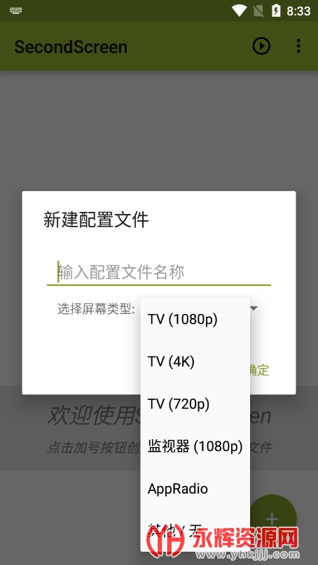 2、输入配置文件名称,选择屏幕类型,有1080p、720p等