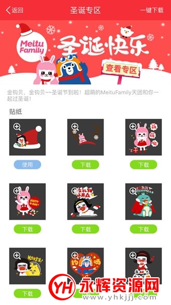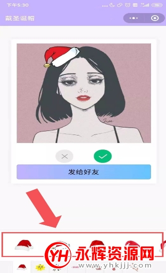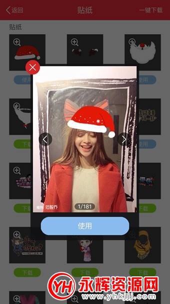 在圣诞专区中贴纸第一个就是圣诞帽了,点使用然后接着往下操作,下面的步骤相信大家都会啦。