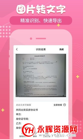 小明扫描王app是一款非常专业的文字识别扫描助手。使用这款软件,可以导入你手机中的图片,将图片中的文字一键翻译为图片,十分方便。有需要的朋友们可以来永辉资源网下载使用哦!