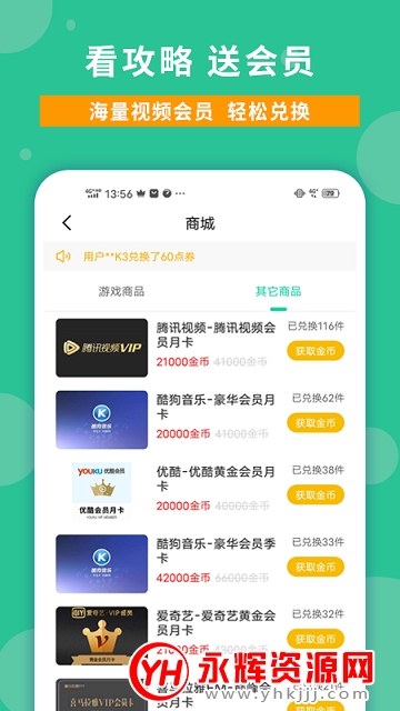 和平精英等角色皮肤与道具,及各大平台的视频会员等礼品。