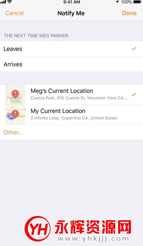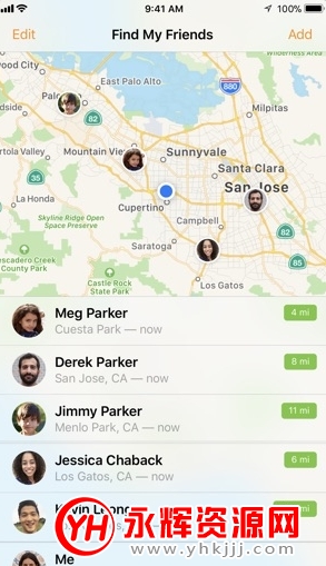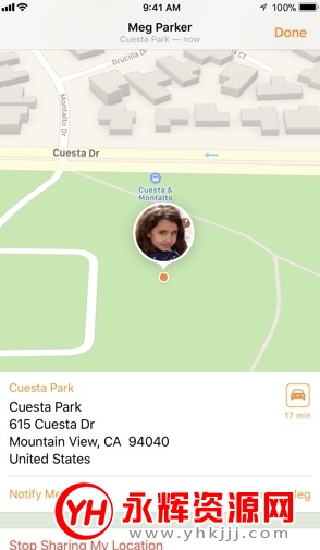 在您的朋友同意使用“查找我的朋友”与您共享其位置后,您就能在列表或地图上看到这位朋友的位置。