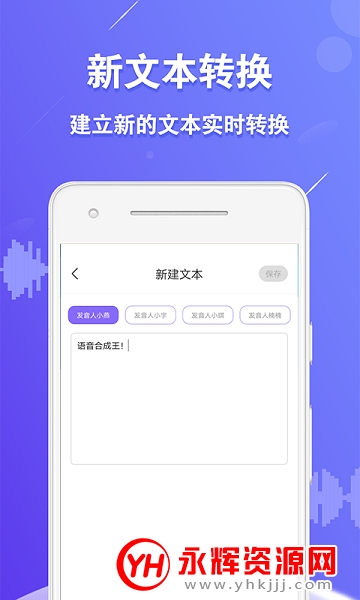 语音合成王app免费版是一款非常好用的手机语音文字转化工具软件,用户可以通过软件来合成各种各样的声线,然后使用这些声音来制作自己需要的语音,直接编辑文字就可以得到高质量的语音内容,适用于不同场合,轻松转换语音场景,既方便又实用,有需要的朋友就快来永辉下载体验吧!