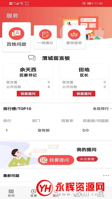 提供了排行榜,选择全县、全市等即可查看上榜部门的回复数和问题数;