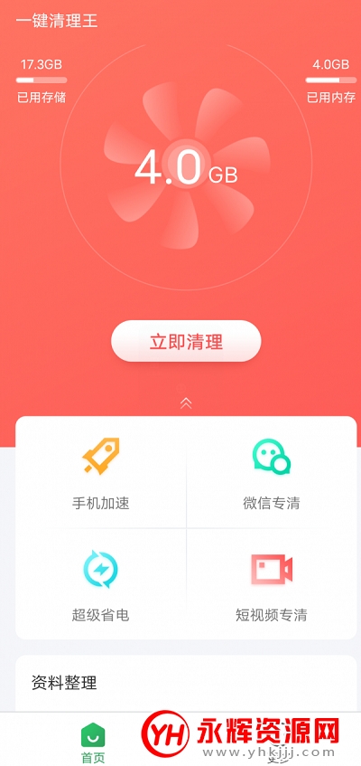 一键清理王app是一款超级火爆的手机内存优化软件。使用这款软件可以一键扫描出你手机中残余垃圾文件并进行快速清理,让你的手机不在卡顿。有需要的朋友们快来永辉资源网下载吧!
