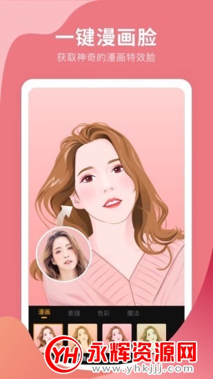 3、而且有非常给力的漫画效果可以供你使用,一秒就可以变成漫画脸,是二次元少女的不二之选。