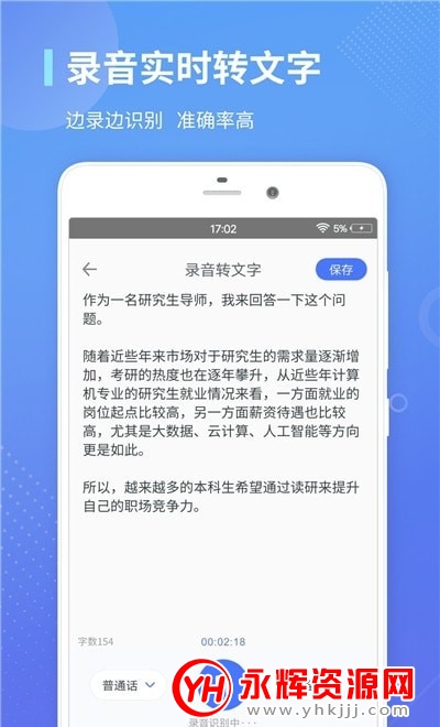 录音转文字通是一款非常实用的录音文字转换应用软件。使用这款软件,你只要导入手机中的录音文件,软件就会将文字翻译导入出来提供给你,非常方便。有需要的朋友们欢迎来永辉资源网下载体验哦!
