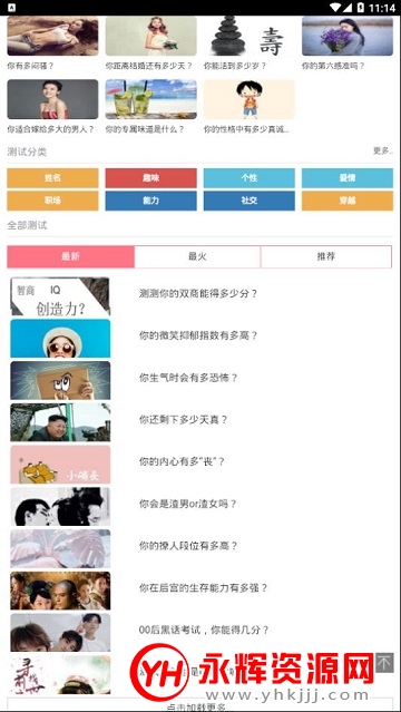 种类齐全多样,海量的年轻用户参加,提供了直接的对话入口,分享吐槽没事干的时候可以随时来玩的小测试。