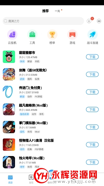 您可以轻松地获得所需的功能游戏,下载管理并了解下载的游戏资源。
