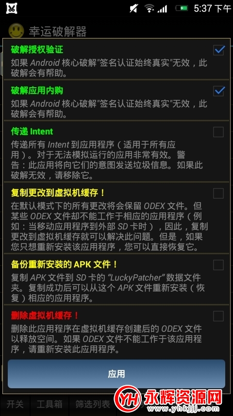 支持自定义破解、移除Google授权验证、移除AmazonAppStore授权验证、移除Google广告、手动破解解决四种破解方式。