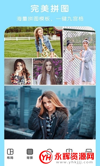唯美滤镜:唯美滤镜,呈现非凡效果,完美拼图:海量拼图模板,一键九宫格;