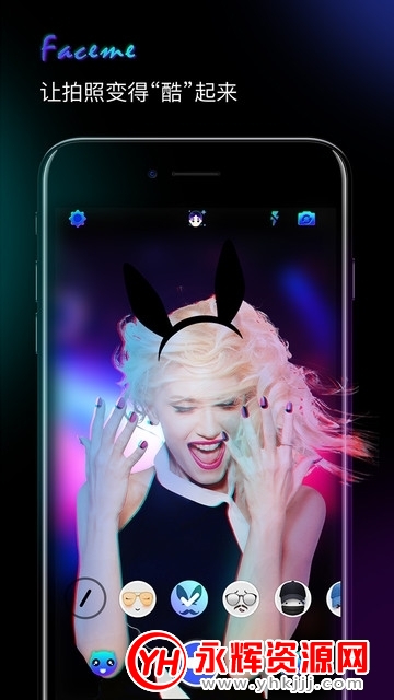 脸很酷是惊人的照片神器,只要你的脸在照相机画面上就可以添加特殊效果的贴纸。正确的脸部识别充分发挥了特殊效果,强大的美容功能使你自己无法摆脱,让faceme的脸发挥你的想象力,Faceme的脸部酷安卓版有很多特殊效果滤镜,还有兴趣的贴纸,用户可以免费使用,发挥想象力