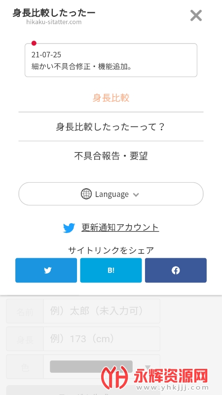 hikaku-sitatter身高软件中文版最新版本是一款十分有意思的身高测量工具,这款软件的起源来自于日本,可以很好的对你身高数据进行分析,对这款软件感兴趣的朋友们欢迎来永辉资源网下载哦!