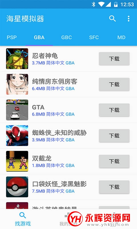 游戏内整合了rom市场,点击下载即可启动游戏;