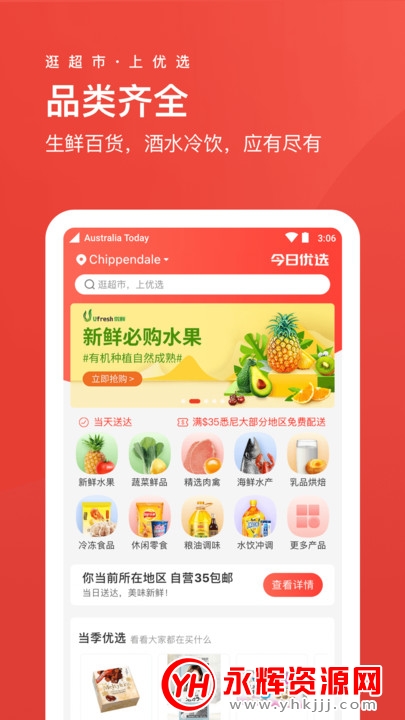 Umall今日优选app是澳大利亚今日传媒集团旗下电商,Umall今日优选app为消费者提供在线购物服务,足不出户可以买到你在澳洲线下超市里所有产品,包括水果蔬菜、肉禽蛋鲜牛奶酸奶、鲜肉冻肉、生猛海鲜以及各种冻货。同时,还有各种零食、饮料和生活用品等。更重要的是,我们保证下单当日送达到家,价格还比传统超市更便宜。