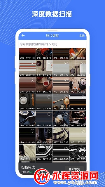 一键快速扫描,将手机进行深度扫描,知道数据并根据个人的需求选择恢复的图片,提高效率,恢复更真实;