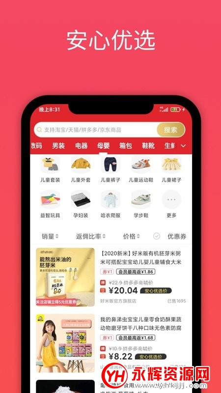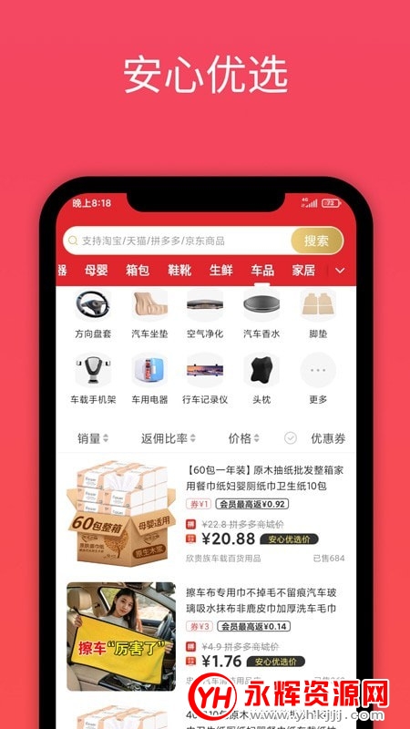 安心优选app是一款非常优质的掌上购物平台。这款软件内有着超多全网火爆商品,用户可以通过软件进行放心选购,质量都是有所保障的。喜欢购物的朋友们一定不要错过了,快来永辉资源网下载吧!