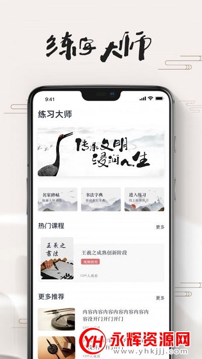 练字大师app是一款非常优质的书法在线学习软件。这款软件内有着超多书法学习课程,用户可以通过软件进行安心学习。有喜欢的朋友们快来永辉资源网下载体验吧!