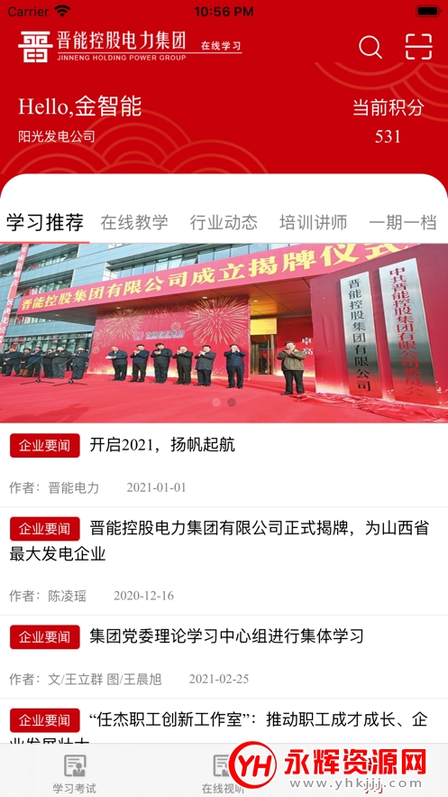 晋能集团培训考试系统,包含在线视听,资料学习,师资查询,日常培训等内容