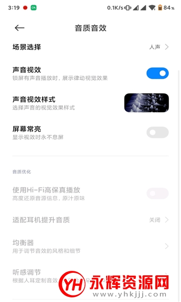 连接耳机后再音效音质中把使用米音提升音质开关打开,然后点击打开均衡器.
