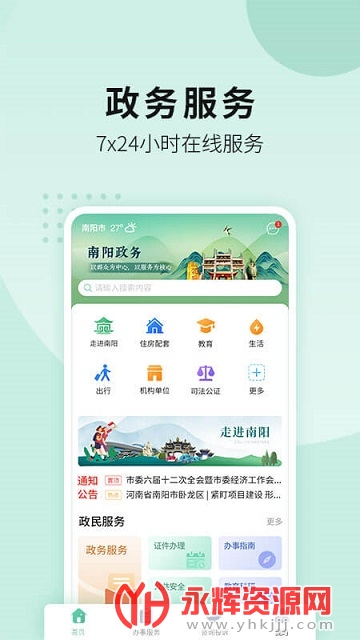 南阳政务服务中心是一款非常好用的手机线上政务生活服务软件,软件凭借了强大的互联网大数据技术为用户构建了一个功能全面的线上政务服务平台,专门为南阳本地的朋友带来了最为优质便捷的线上政务服务,有需要的朋友就快来永辉下载体验吧!