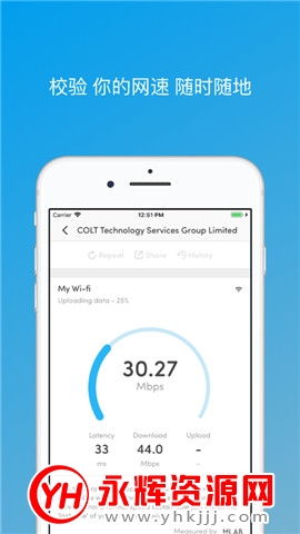 运行互联网速度测试、WiFi速度测试、下载速度和上传速度分析和延迟