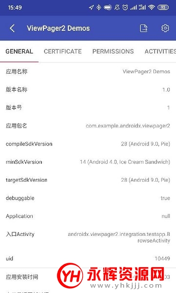显示4大组件列表以及详细信息、应用权限相关信息、签名信息以及大量基础信息
