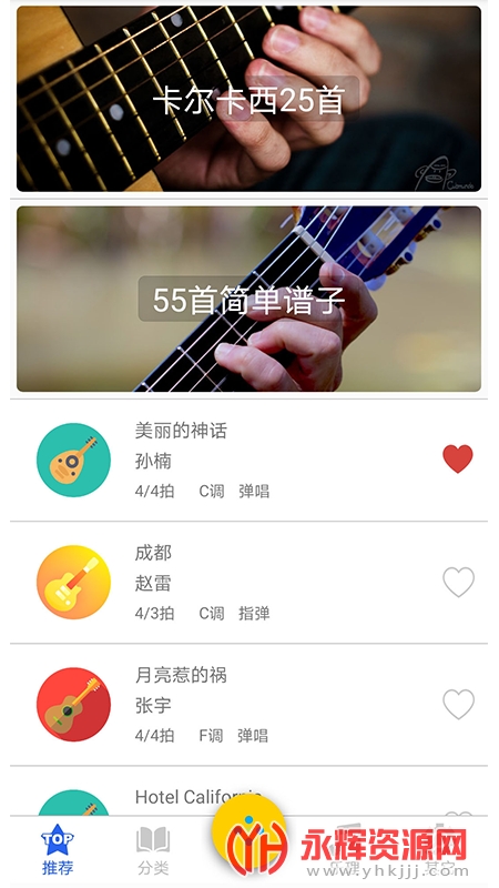 吉他谱之家app:一款为喜欢吉他的朋友们提供的吉他学习软件,这款软件内有这非常详细的吉他视频教学课程提供给大家免费学习。有需要的朋友们快来永辉资源网下载吧!